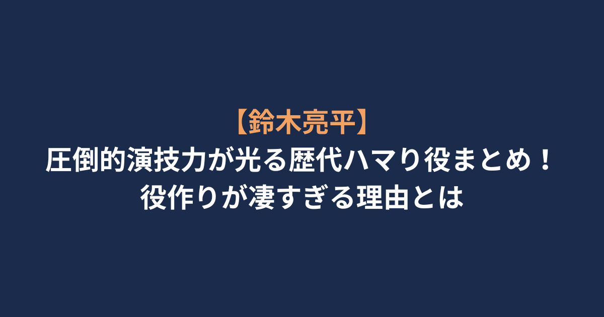 まとめ:なぜ鈴木亮平は「ハマり役」を量産できるのか