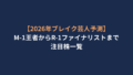 - M-1グランプリ2026:例年は12月下旬に決勝戦。言わずと知れた漫才の祭典。すでに1月から1回戦の準備を始めているコンビも……!