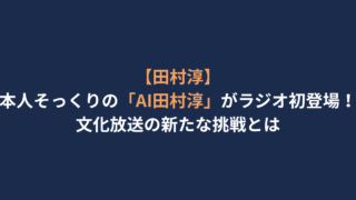【田村淳】本人そっくりの「AI田村淳」がラジオ初登場!文化放送の新たな挑戦とは