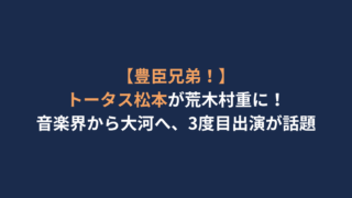 映画・ドラマ 【豊臣兄弟!】トータス松本が荒木村重に!音楽界から大河へ、3度目出演が話題 2026年NHK大河ドラマ『豊臣兄弟!』にトータス松本さんの出演が決定!演じるのはクセの強い武将・荒木村重。過去の出演作やトータスさんの意気込み、主婦目線の期待値をたっぷりお届けします。音楽界のレジェンドが魅せる新境地とは? 2026.01.15 映画・ドラマ