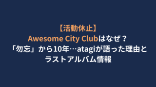 音楽・アーティスト 【活動休止】Awesome City Clubはなぜ?「勿忘」から10年…atagiが語った理由とラストアルバム情報 邦楽シーンに衝撃のニュースが走りました。「勿忘(わすれな)」などのヒット曲で知られる3人組バンドAwesome City Club(オーサム・シティ・クラブ)が、2026年3月31日をもって活動休止することを発表しました。突然の知らせに「え... 2026.01.05 音楽・アーティスト