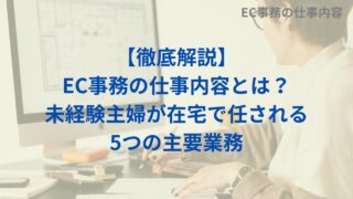 「在宅のEC事務って、具体的にどんな仕事内容なの?」と疑問に思う未経験主婦の方へ。商品登録から受注処理、お客様対応、在庫管理、SNSサポートまで、在宅で任される5つの主要な業務内容を現役EC事務が徹底解説!あなたに向いている業務が必ず見つかります。