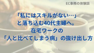 EC事務の体験談 「私にはスキルがない…」と落ち込む40代主婦へ。在宅ワークの「人と比べてしまう病」の抜け出し方