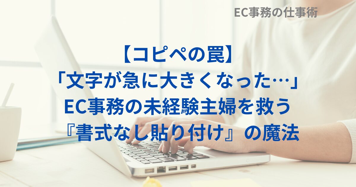 今回は、そんなパニックを1秒で解決する、EC事務ワーカー必須の魔法のテクニック『書式なし貼り付け』についてお話しします。