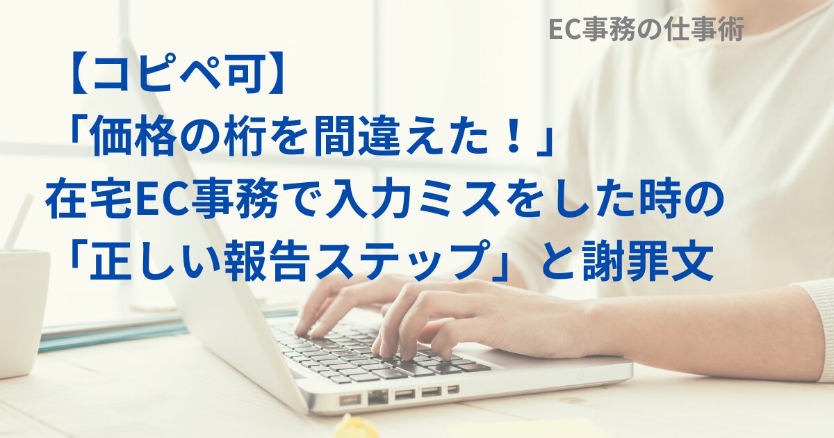 今回は、EC事務で取り返しのつかない入力ミスをしてしまった時の「絶対にやってはいけないNG行動」と、クライアントの信頼を逆に高める「正しい報告のステップ(謝罪テンプレート付き)」を徹底解説します。いざという時のお守りとして、必ず読んでおいてくださいね!