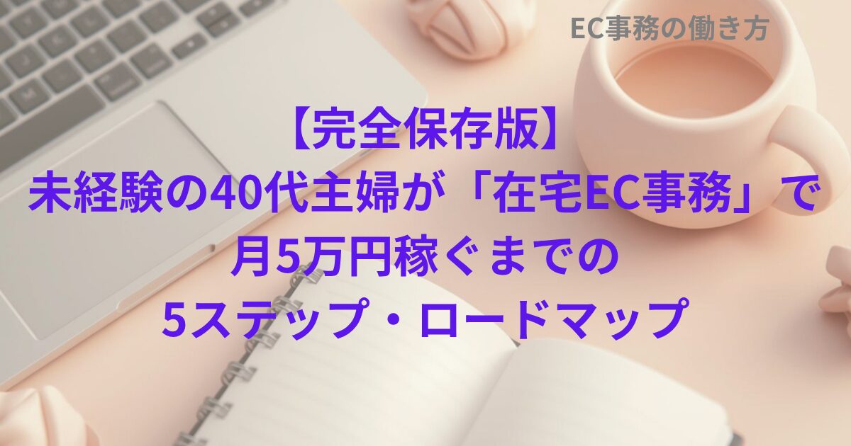 専業主婦でブランクがあり、パソコンも得意ではなかった私が、完全未経験から「在宅EC事務」のお仕事を始め、月に5万円の継続収入を得られるようになるまでの道のりを、5つのステップに分けて分かりやすく解説します!